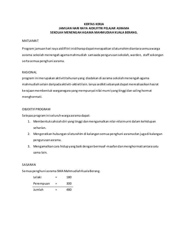 Contoh Kertas Kerja Jamuan Hari Raya Pdf